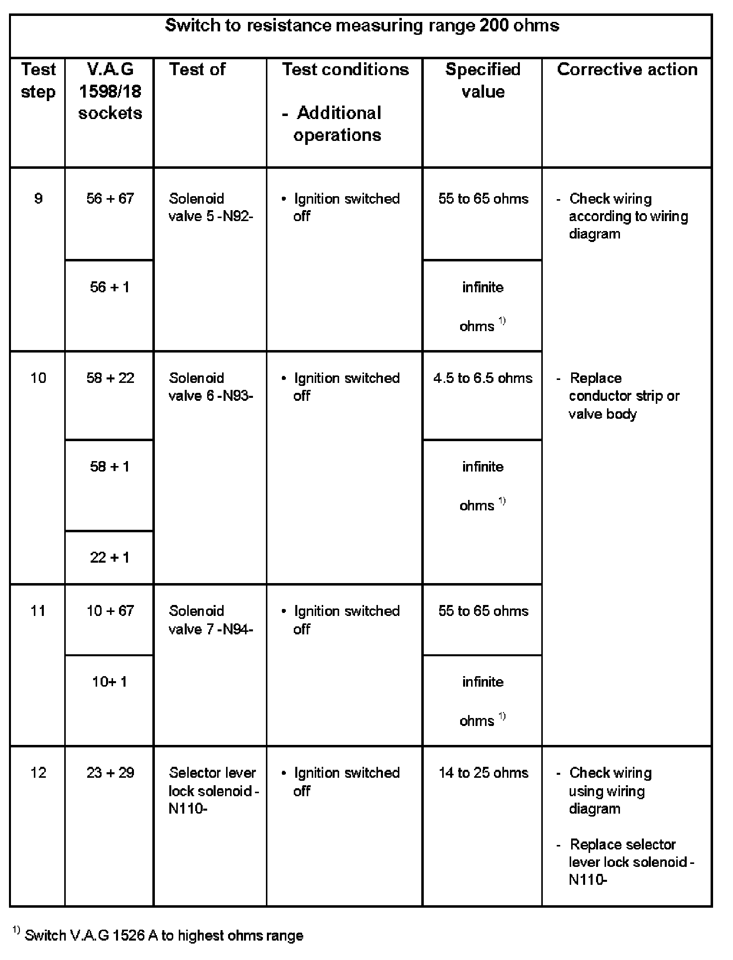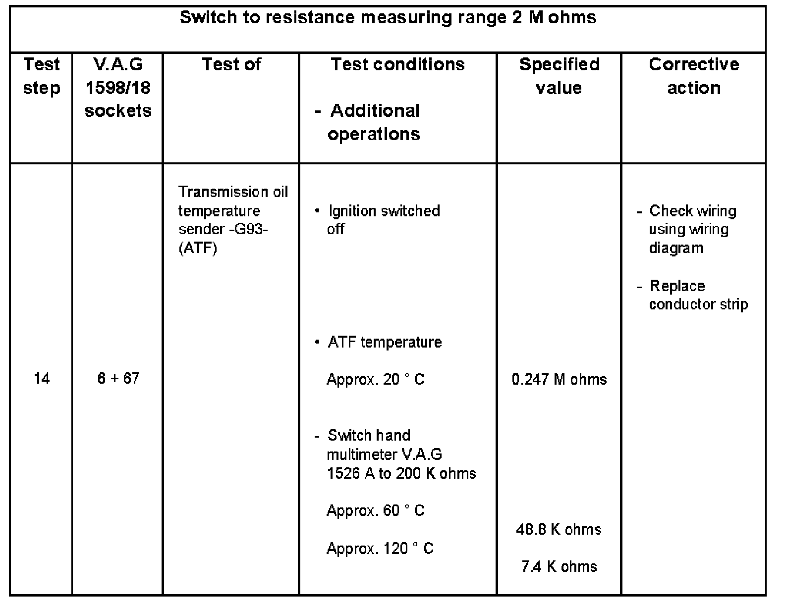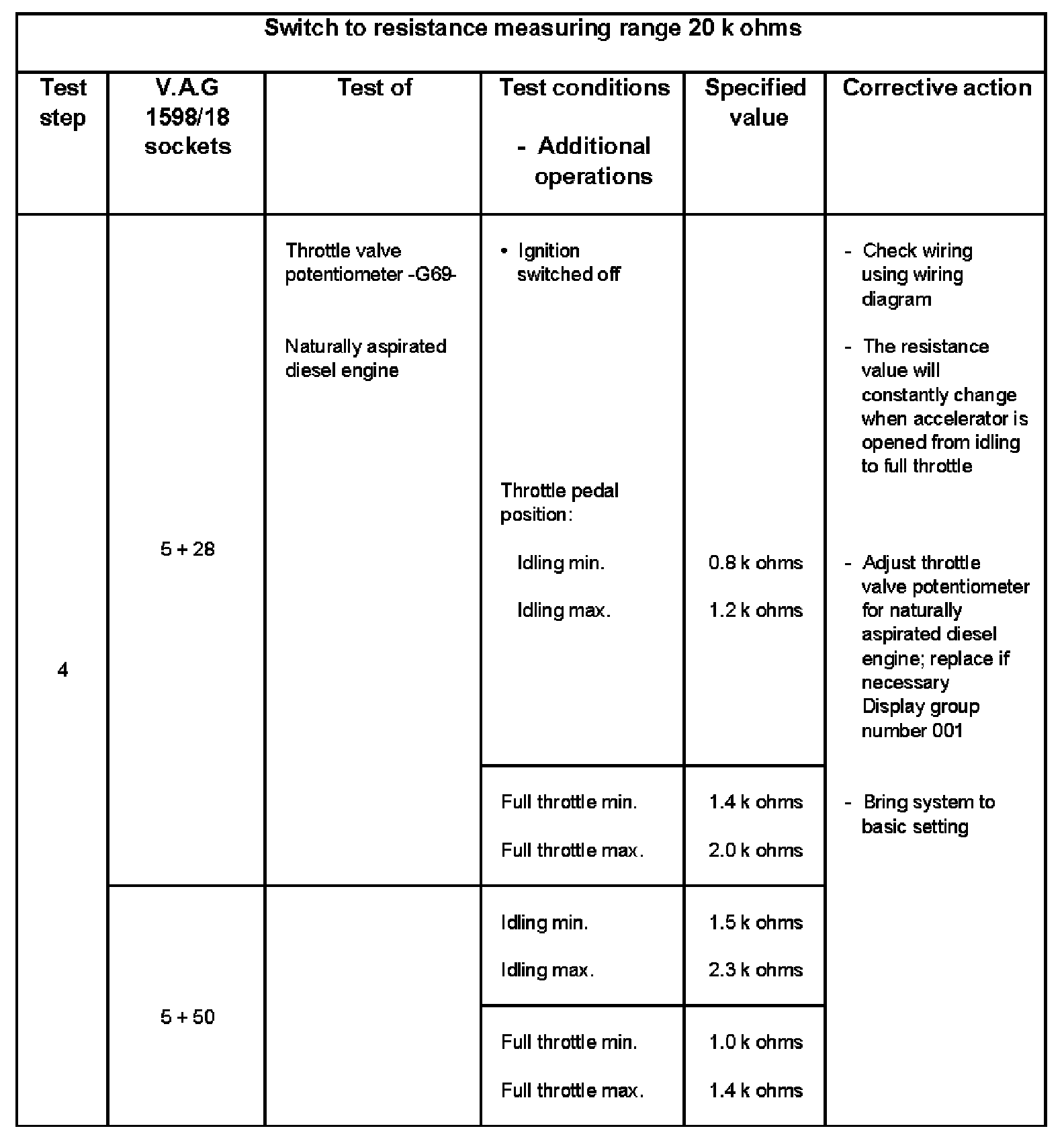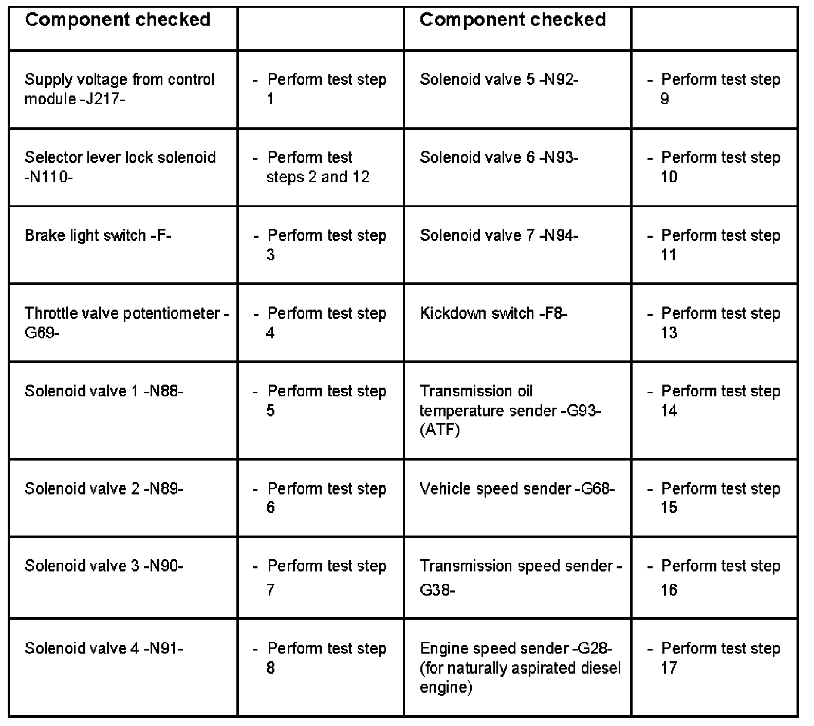 - Only perform test steps for the relevant component as listed in troubleshooting table and measuring value block.