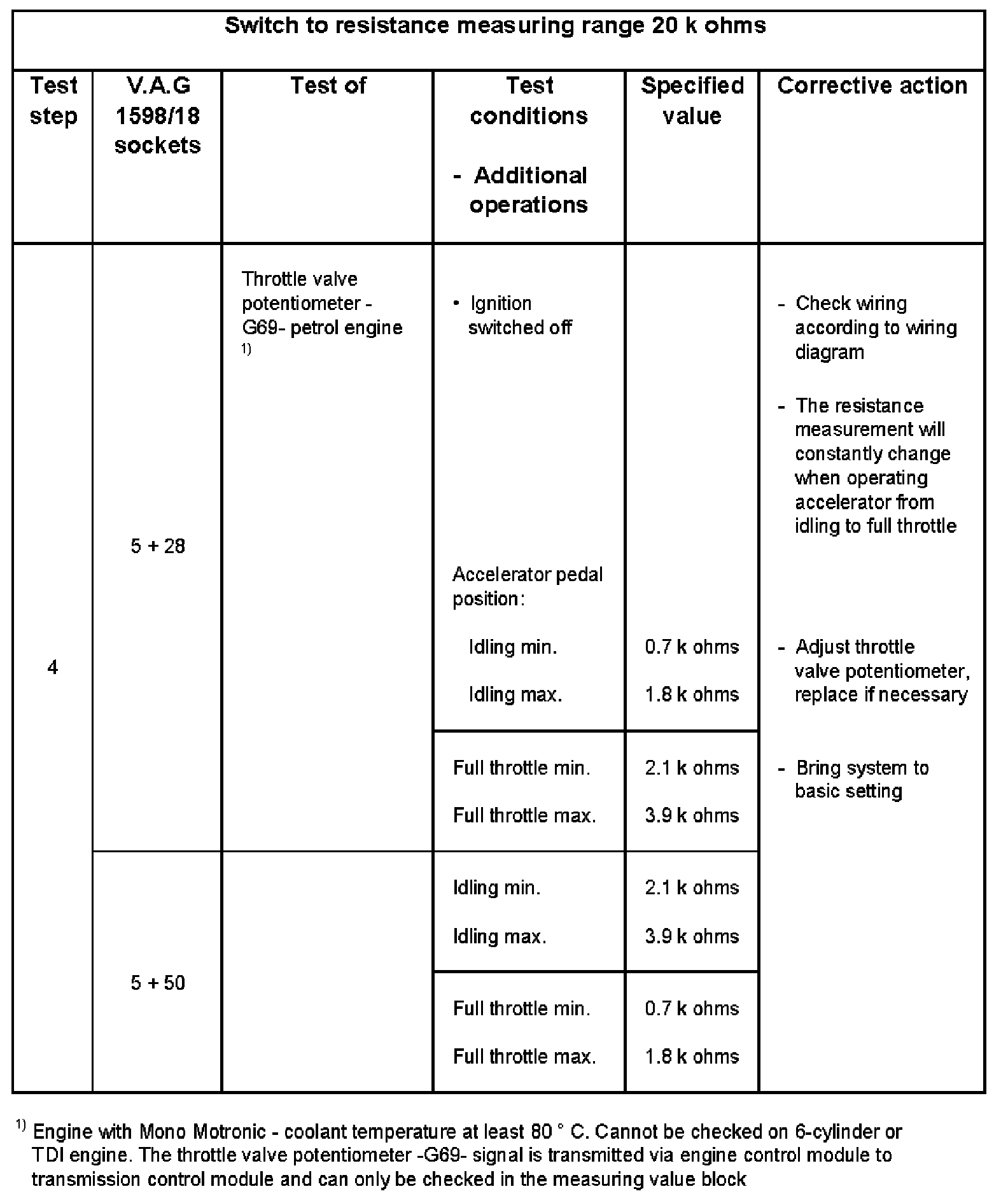 50 - Throttle valve potentiometer sender -G69- (5 Volt) 1)