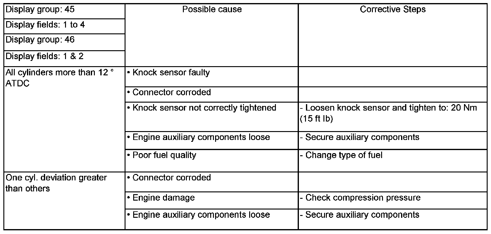 NOTE: Check must be carried out during road test because knock control is only active when engine load exceeds 3 ms.