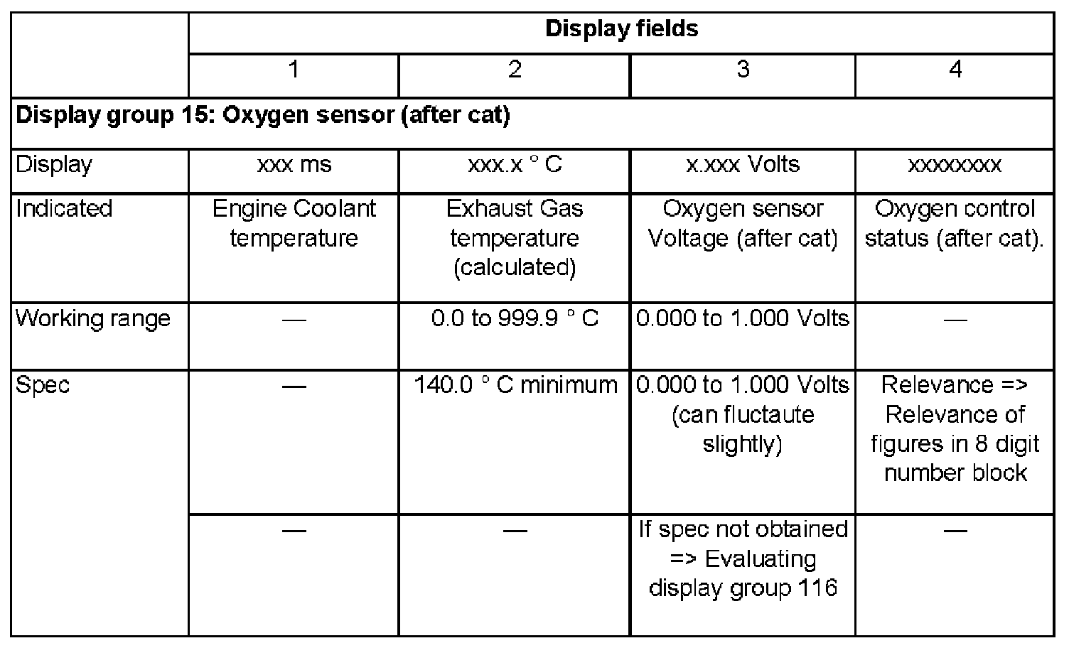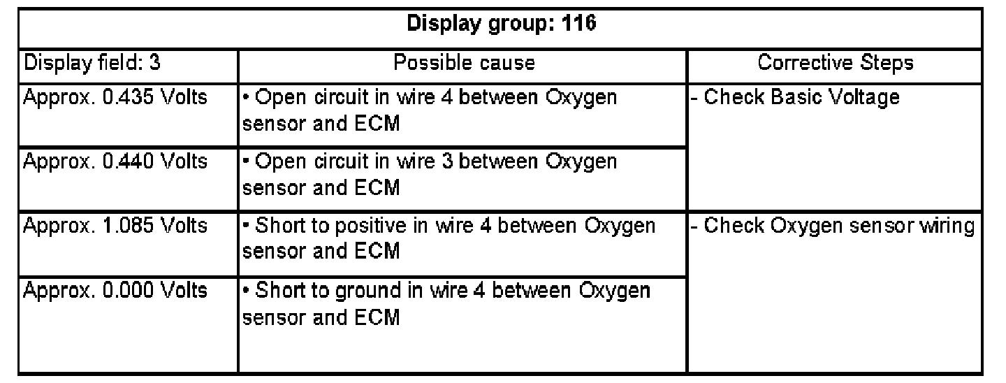 - Note Oxygen sensor voltage (Display field 3).
