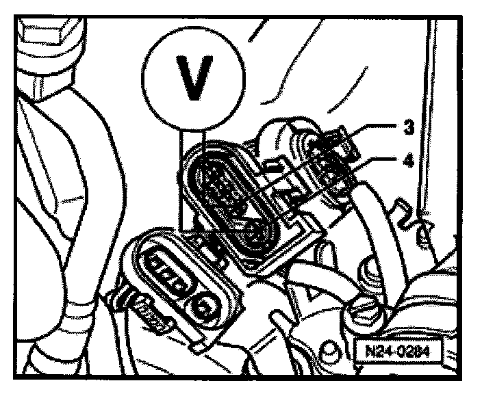 - Connect multimeter between terminals 3 + 4 of ECM connector using jumper wires from VW 1594 adapter kit.
