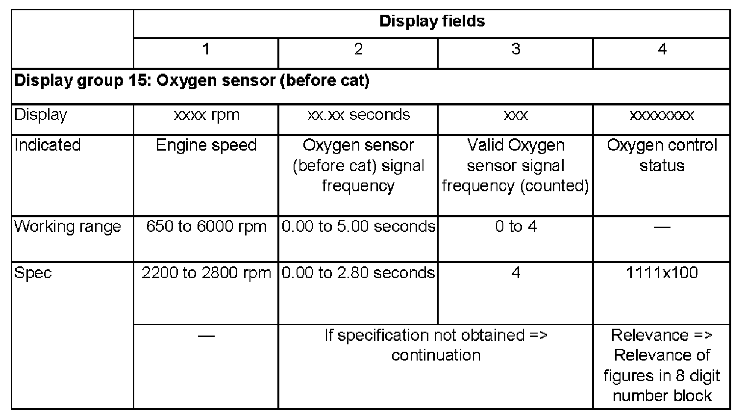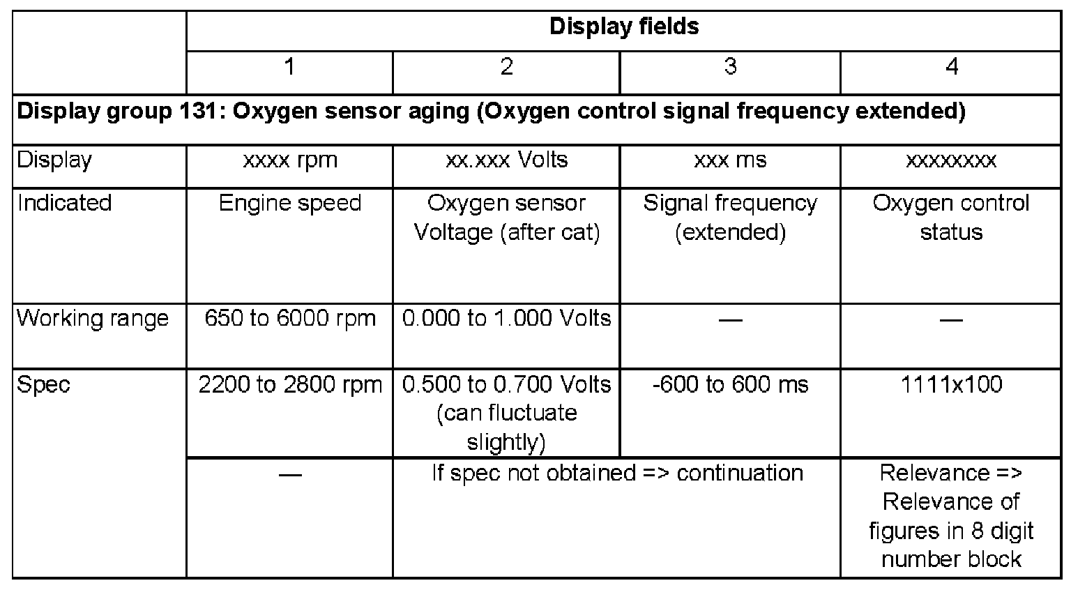 - Raise engine speed to between 2200 and 2800 rpm and check specifications for oxygen sensor aging (before cat).
