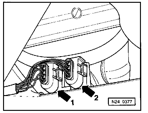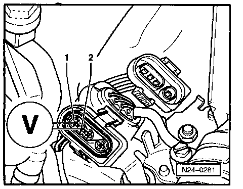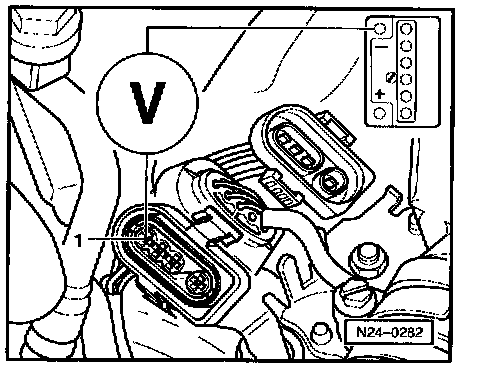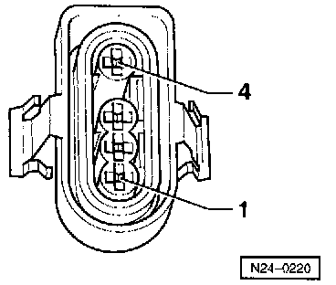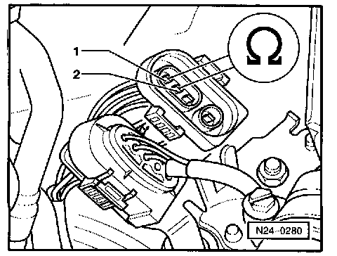 Connect multimeter with aux. cables from VW 1594 to measure resistance at terminals 1 + 2 on connector to Oxygen sensor.