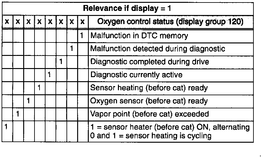 Display Group 120: Oxygen Sensor Heating (Before Cat)
