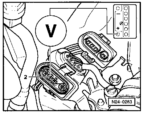 - Connect multimeter between terminals 2 and B+ of ECM connector using jumper wires from VW 1594 adaptor kit.