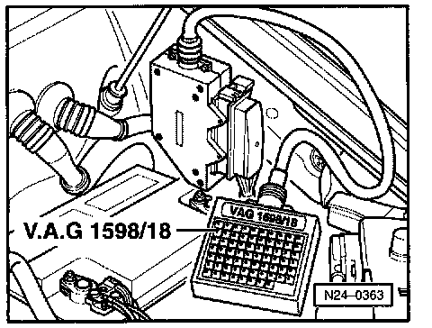 - Connect VAG 1598/18 Test Box to ECM wiring harness.