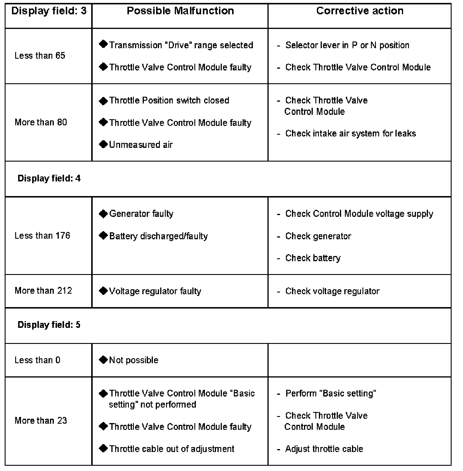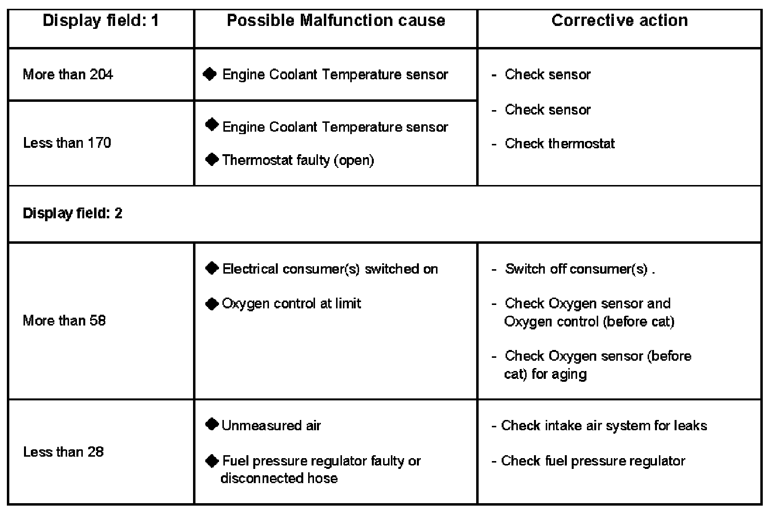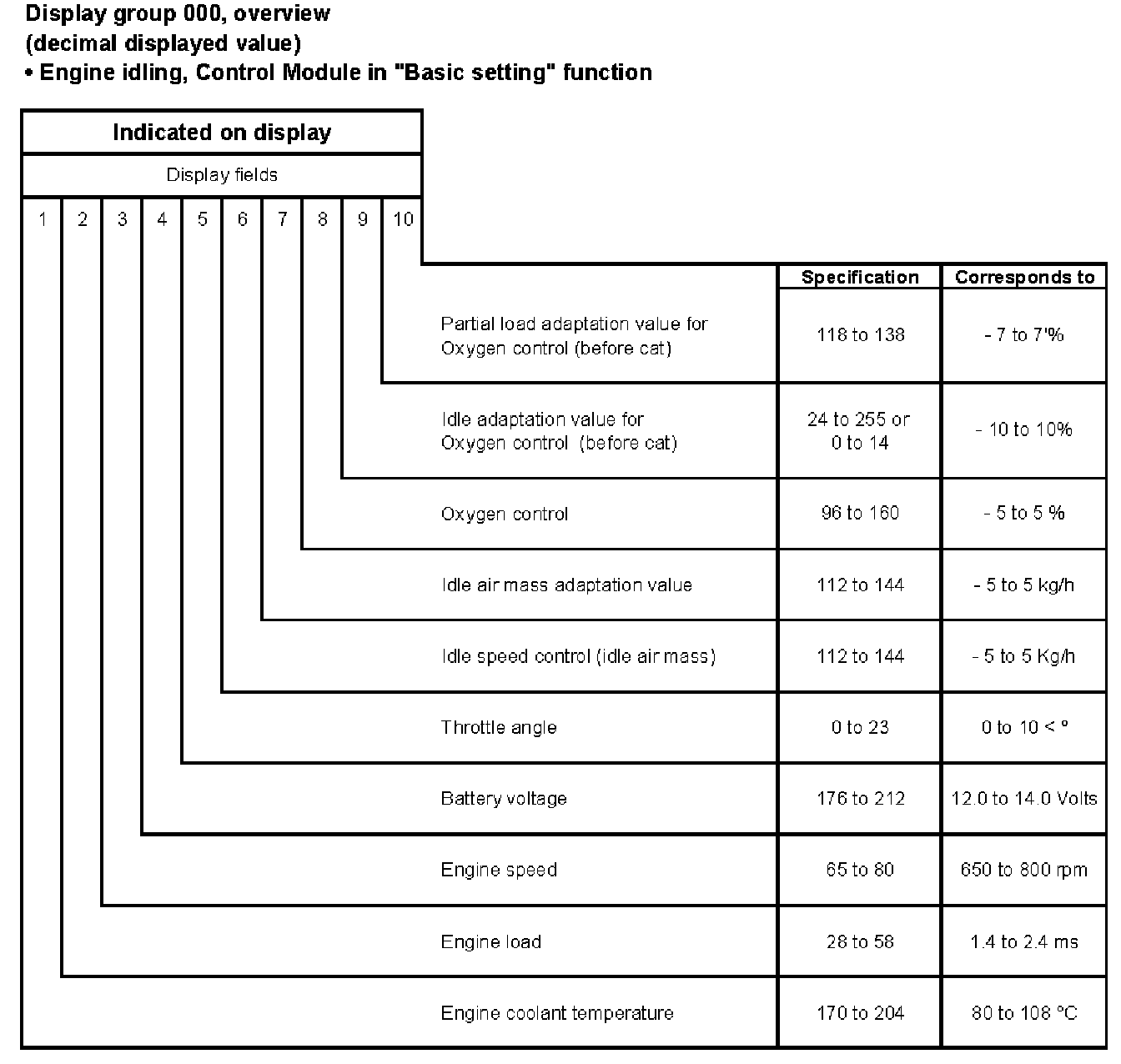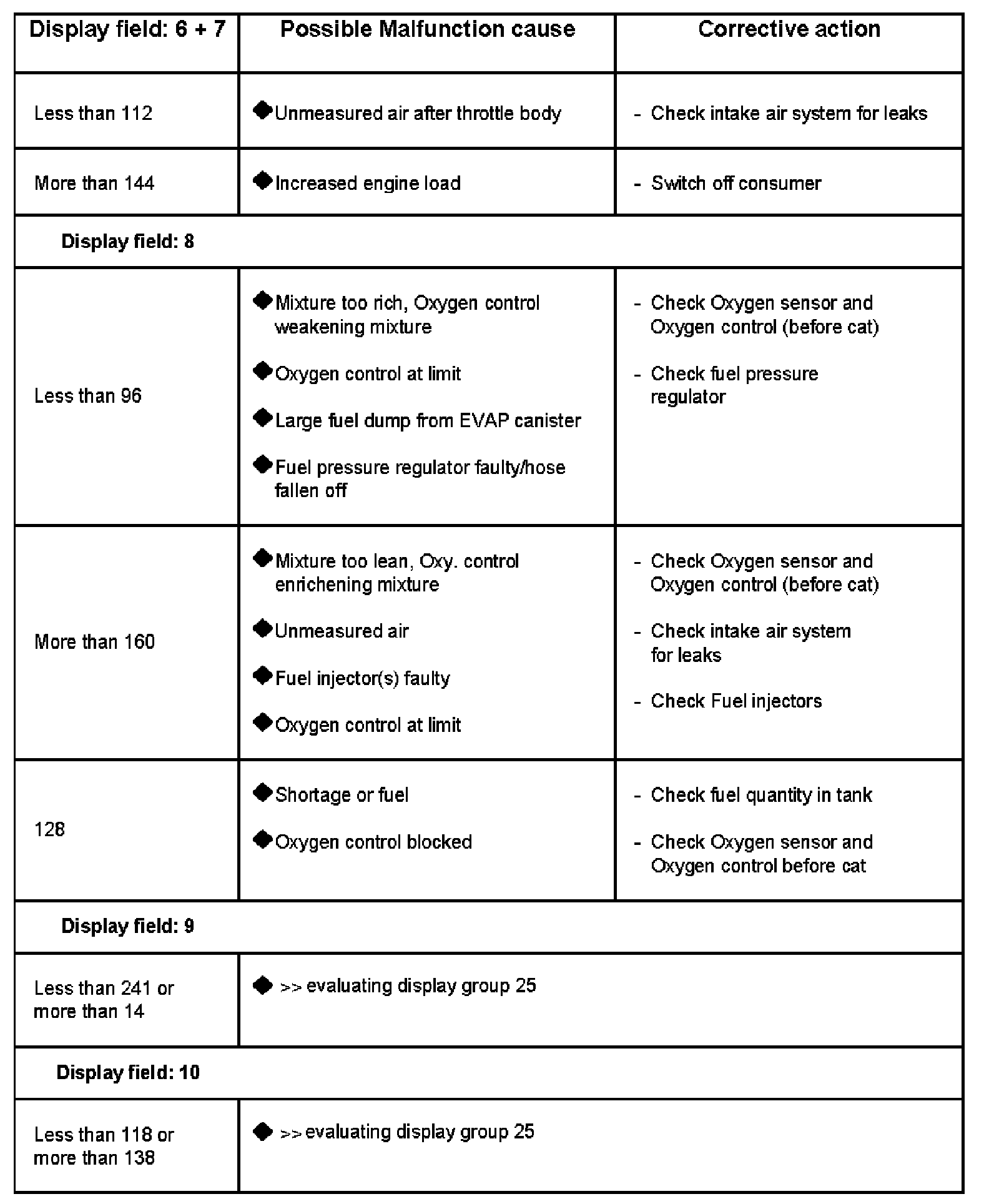 If one of the specifications not obtained See evaluating display group 000