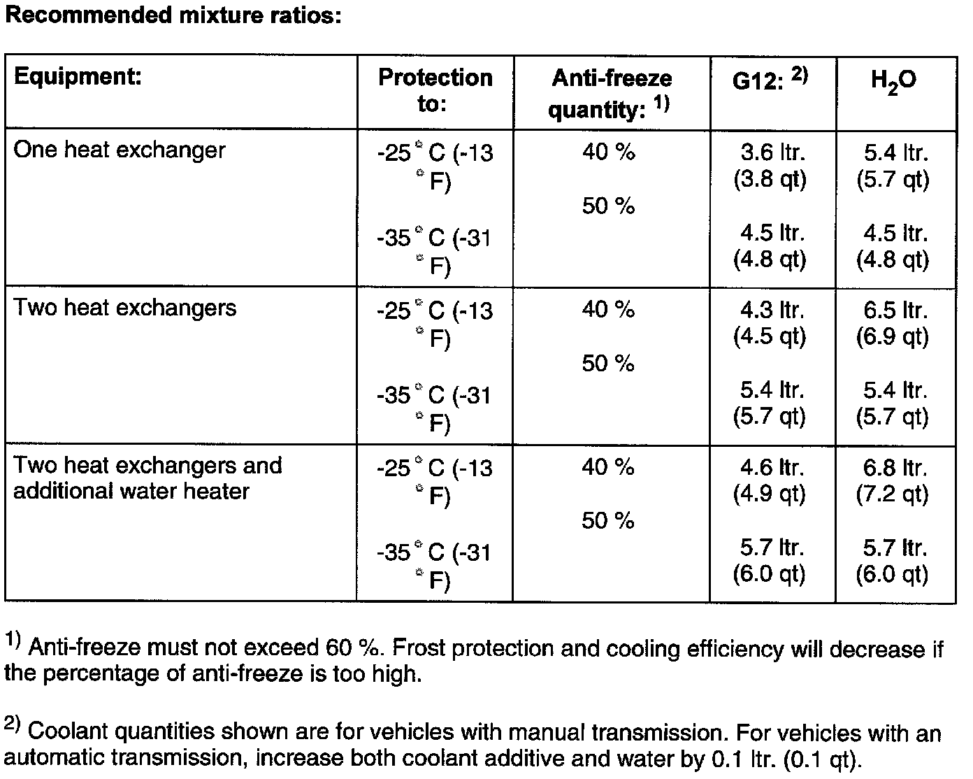 Vehicles up to 6.96 are filled with coolant additive -G11-. Vehicles after 6.96 are filled with coolant additive -G12-.