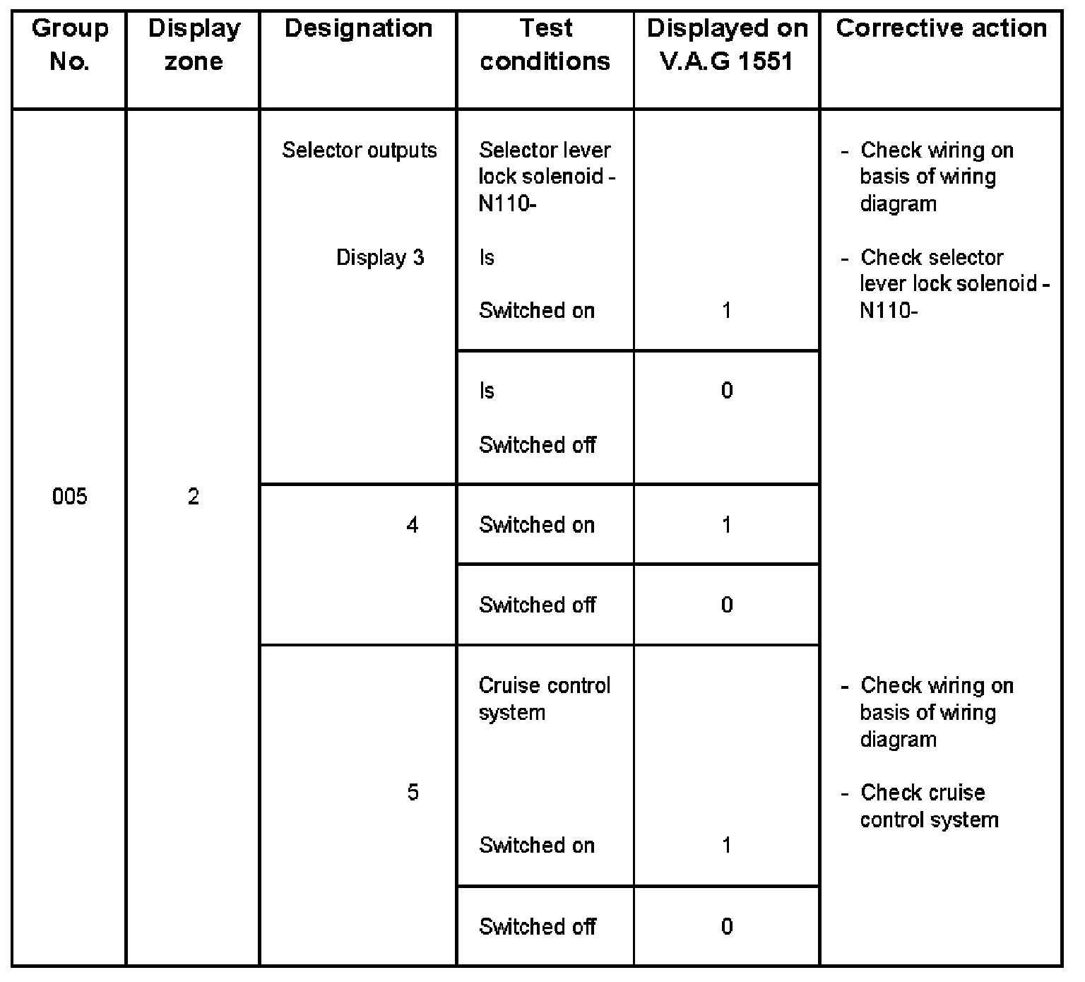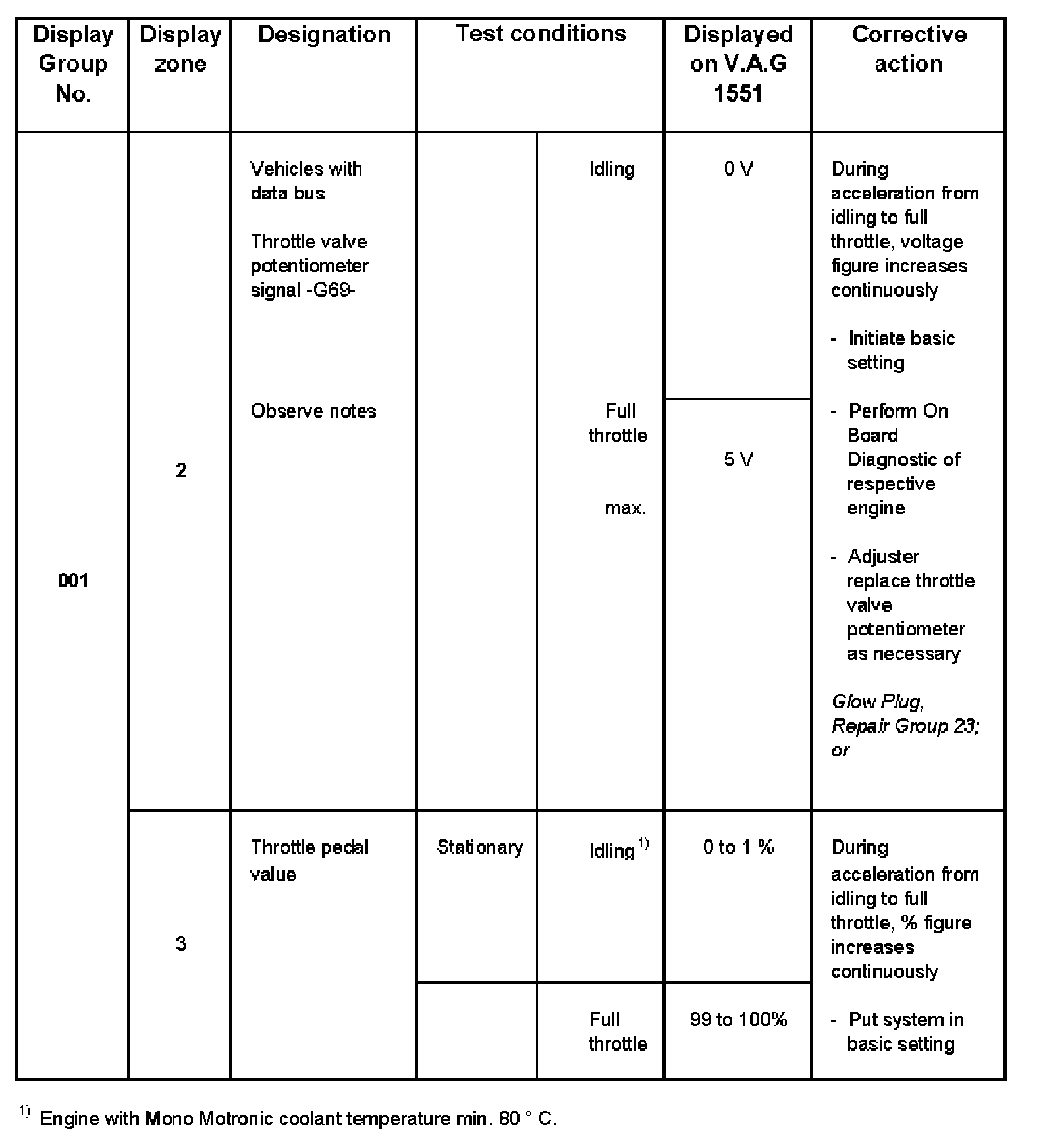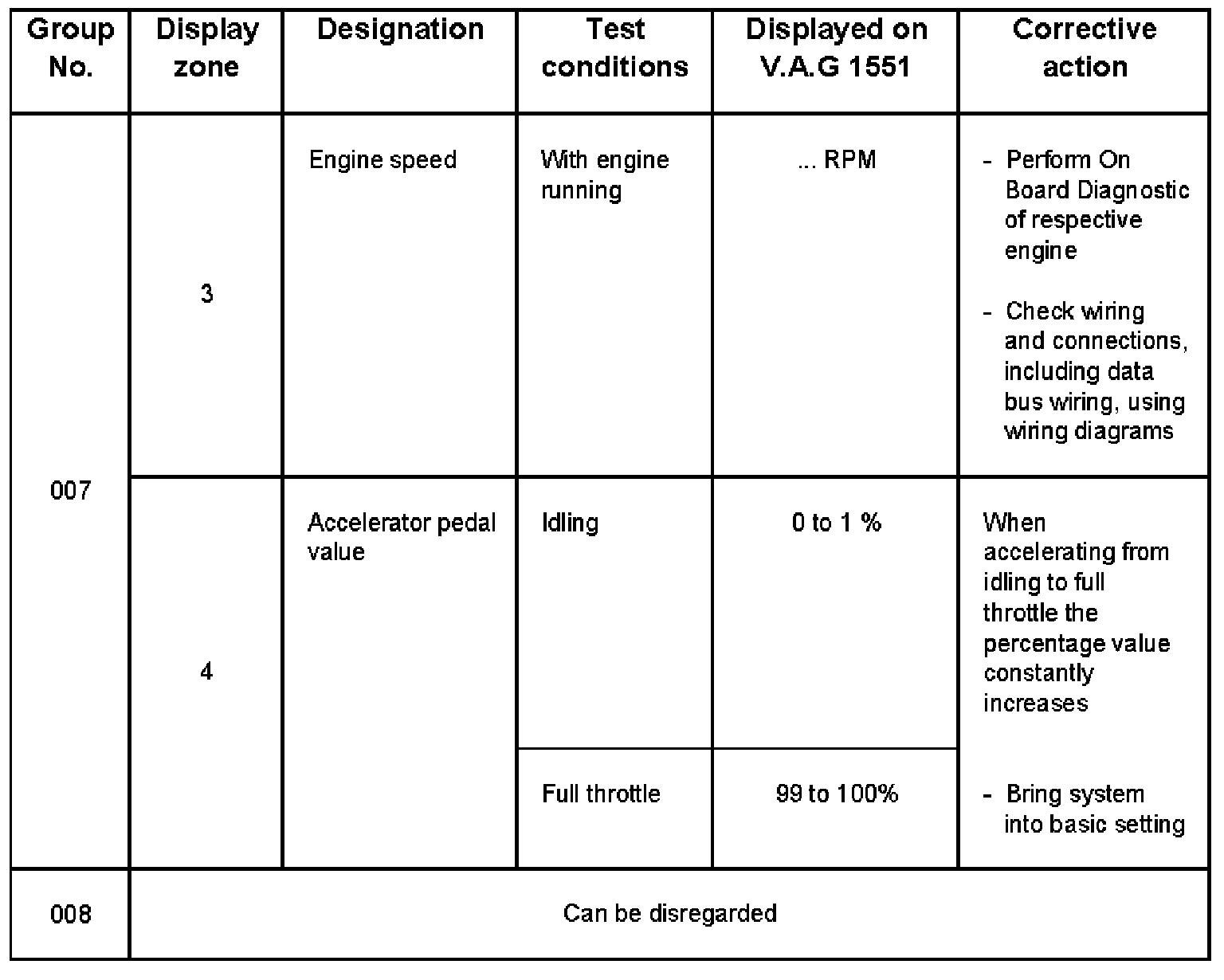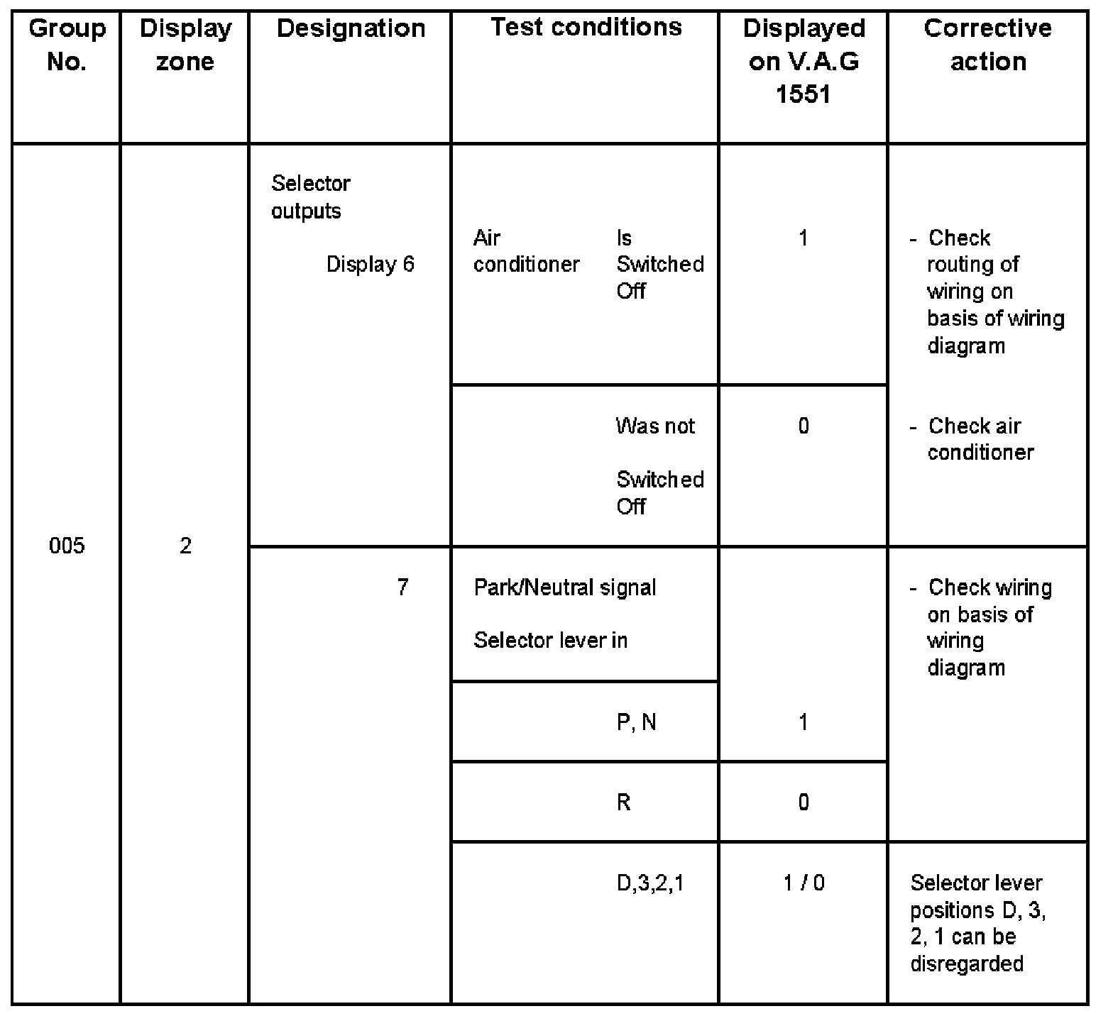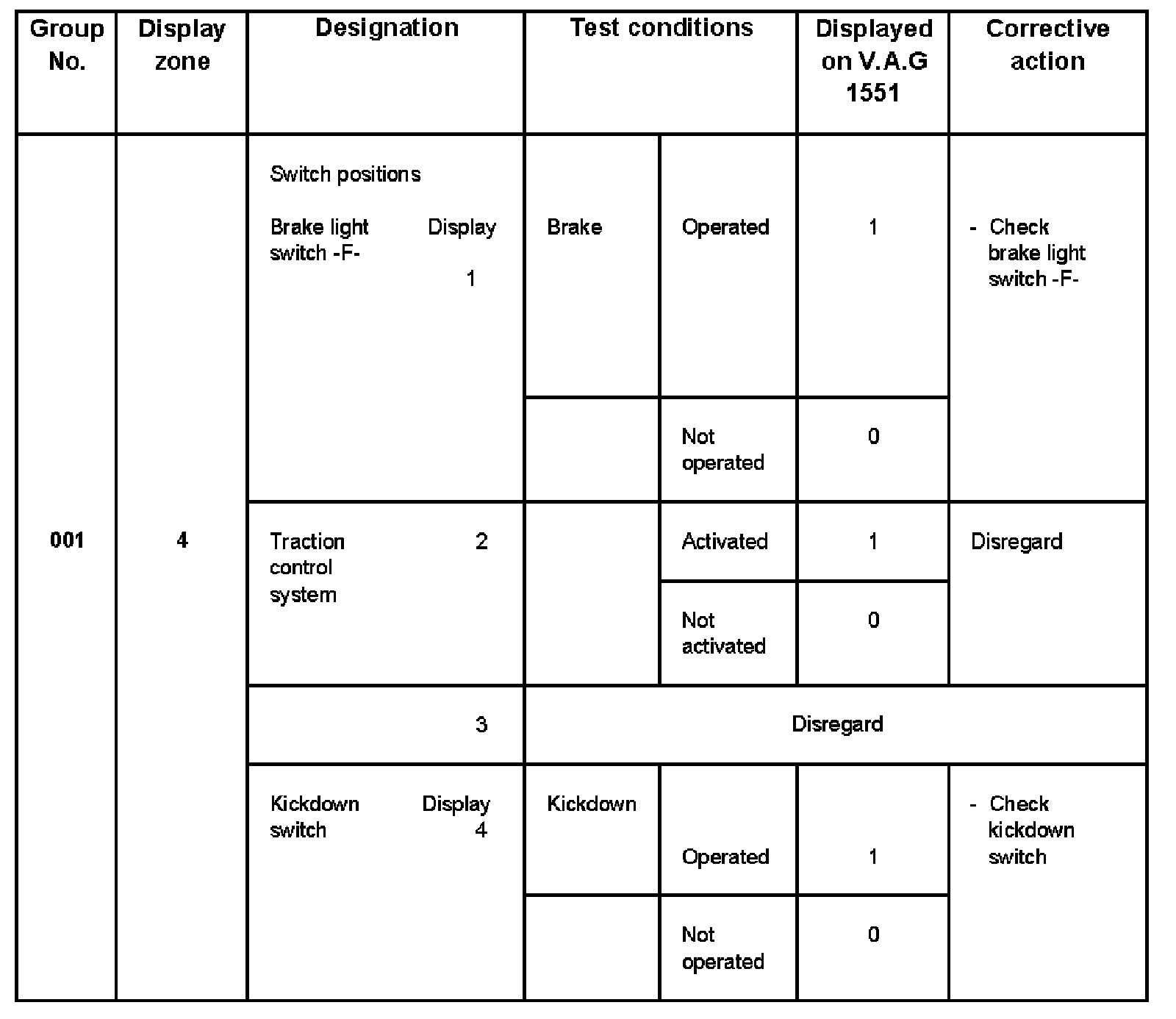 - V.A.G 1551 display zone 1 has 6 characters (0000 00) and is read as follows: