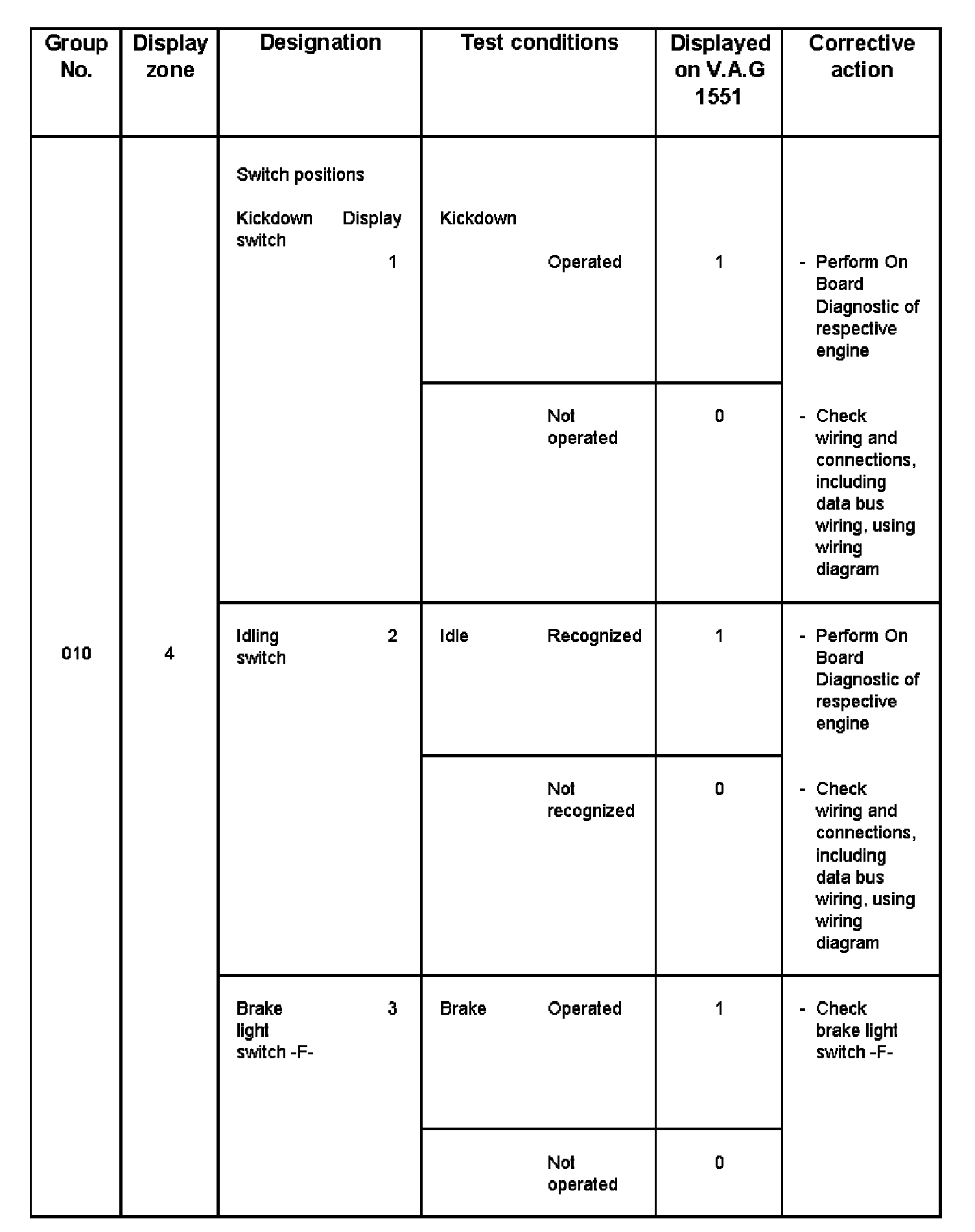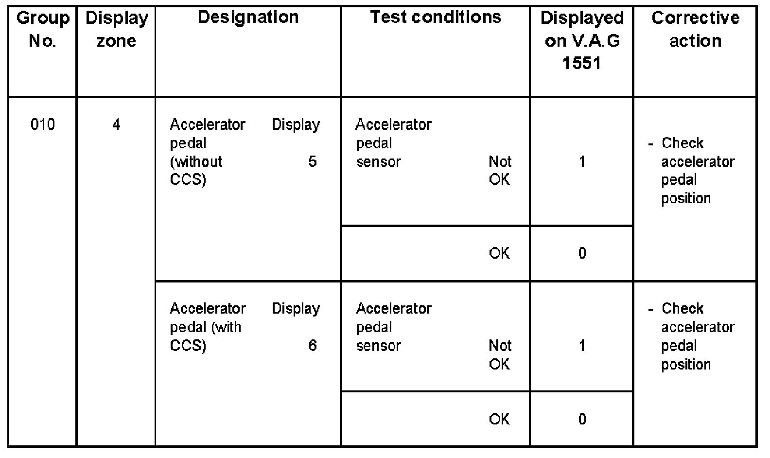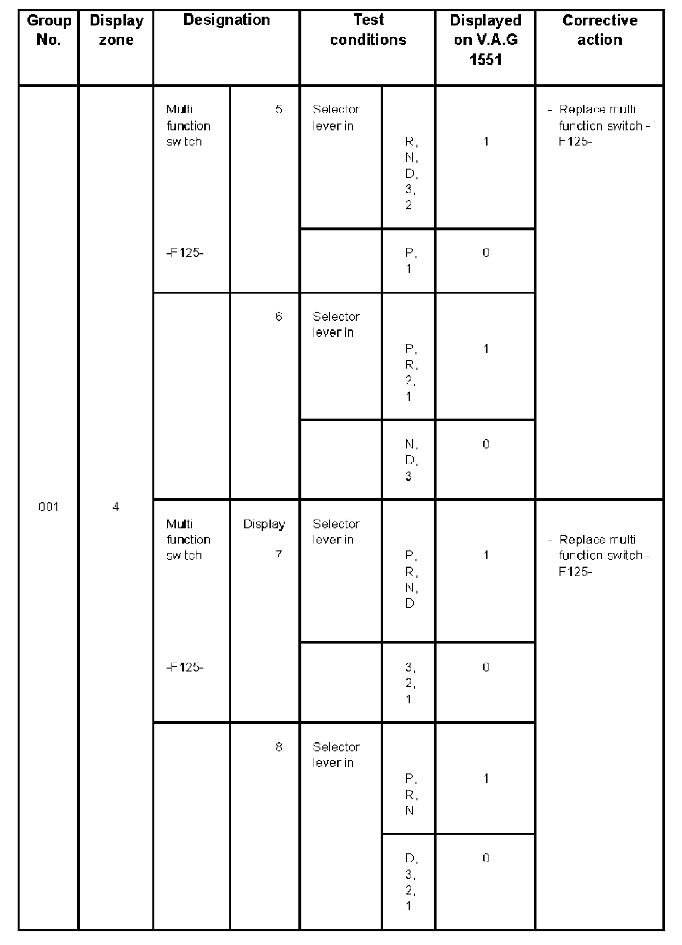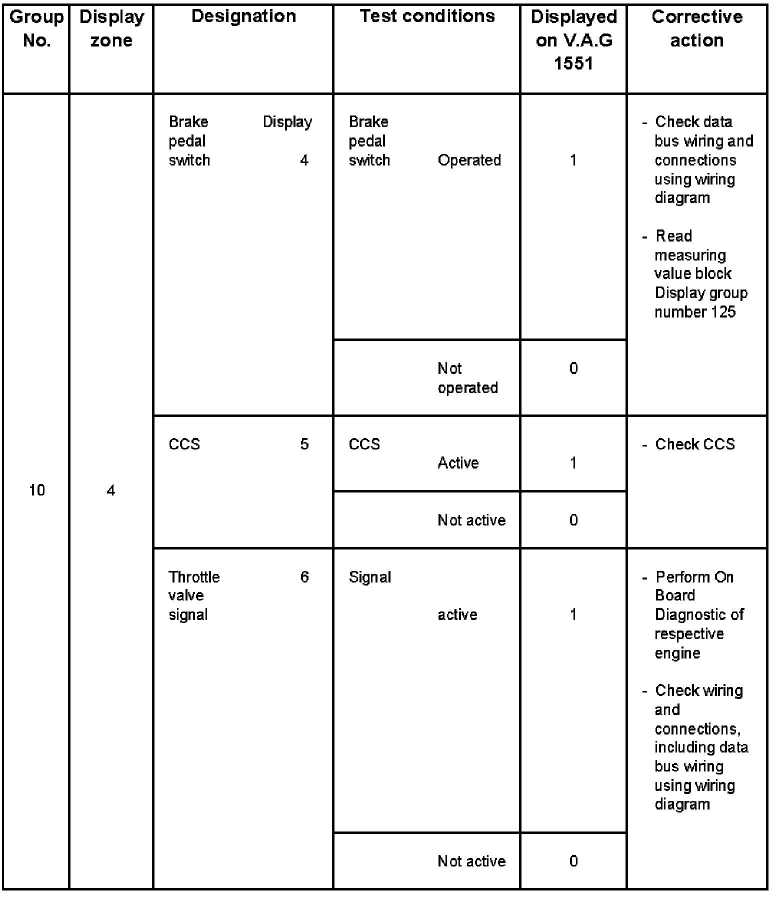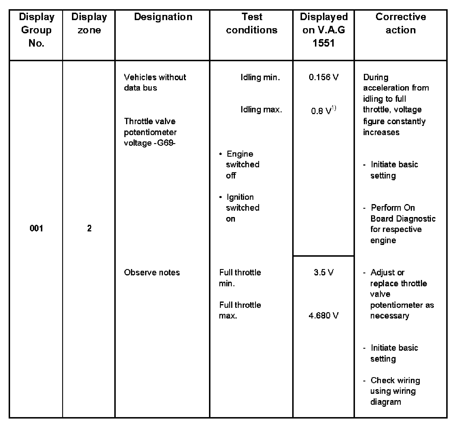 - V.A.G 1551 display zone 1 has 6 characters (0000 00) and is read as follows: