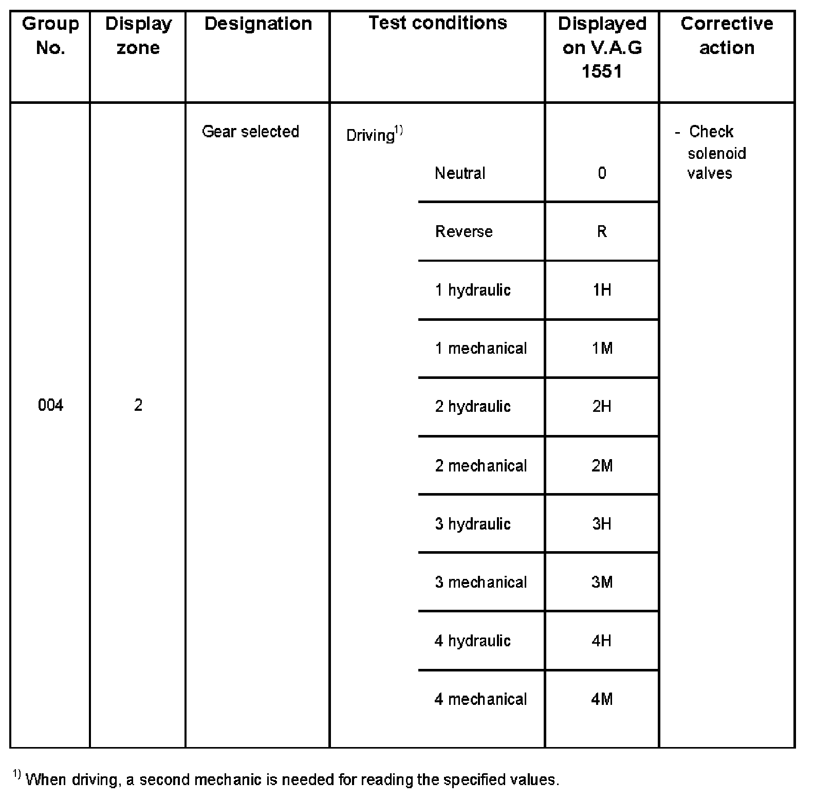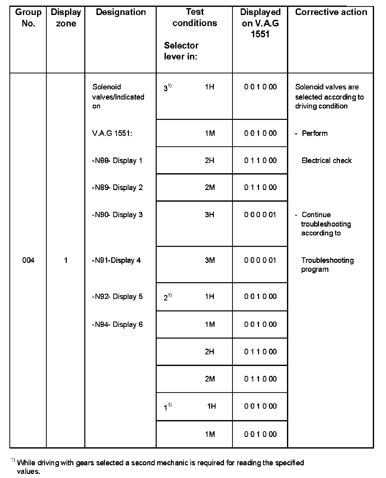 - The solenoid valves can be checked while driving via "Read measuring value block 08"; "display group number 004"
