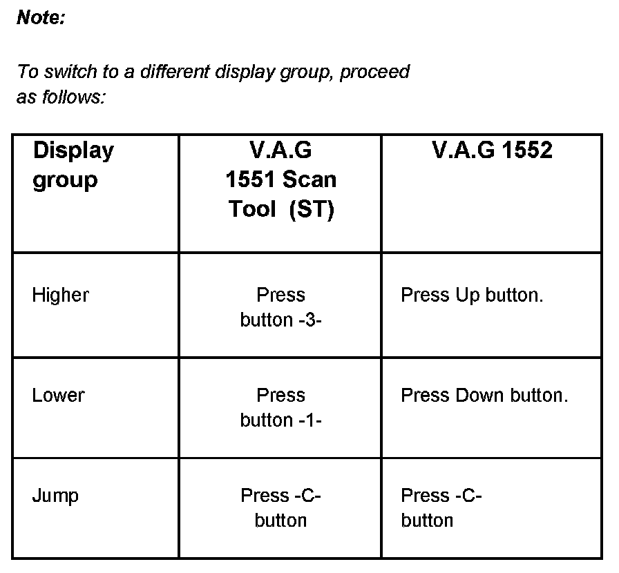 The measuring value block is divided into 3 display group numbers. Assignment of the individual display fields can be found in the display group overview. Evaluating Measured Value Blocks