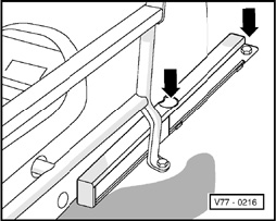 - Remove guide rail securing bolts - arrows -.