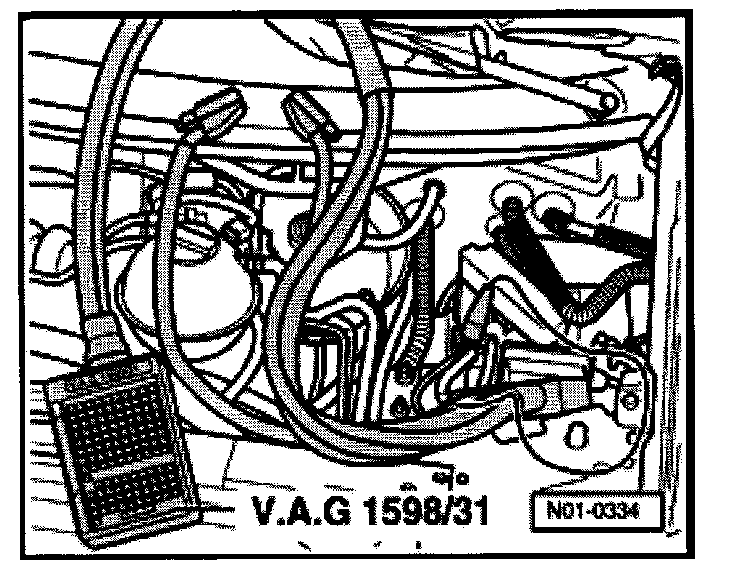 - Connect VAG1598/31 test box to control module wiring harness. Engine Control Module (ECM) is not connected.