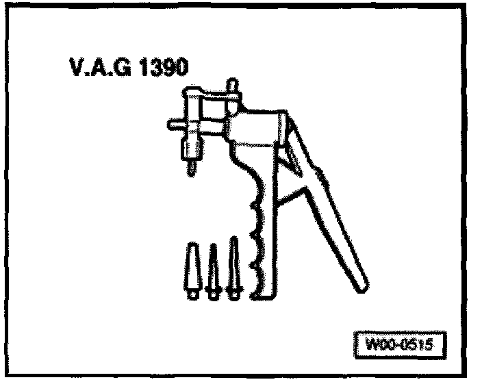 - Connect VAG1390 hand vacuum pump to vacuum hose -1-.