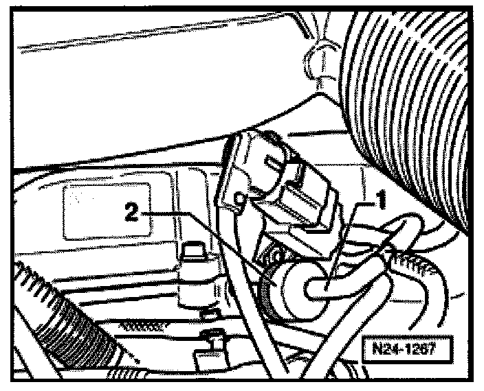 - Disconnect vacuum hose -1- at check valve -2-.
