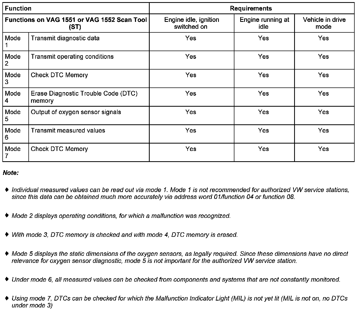 Selectable Functions (Modes) Under Address Word 33, CARB / OBD II