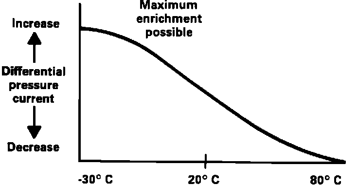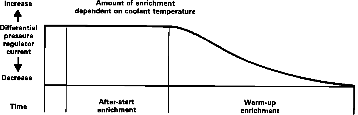 The control unit continues with enrichment during the warm-up period based on coolant temperature. Warm-up enrichment continues, however, at a lower level than after-start enrichment and discontinues when the engine reaches normal operating temperature.