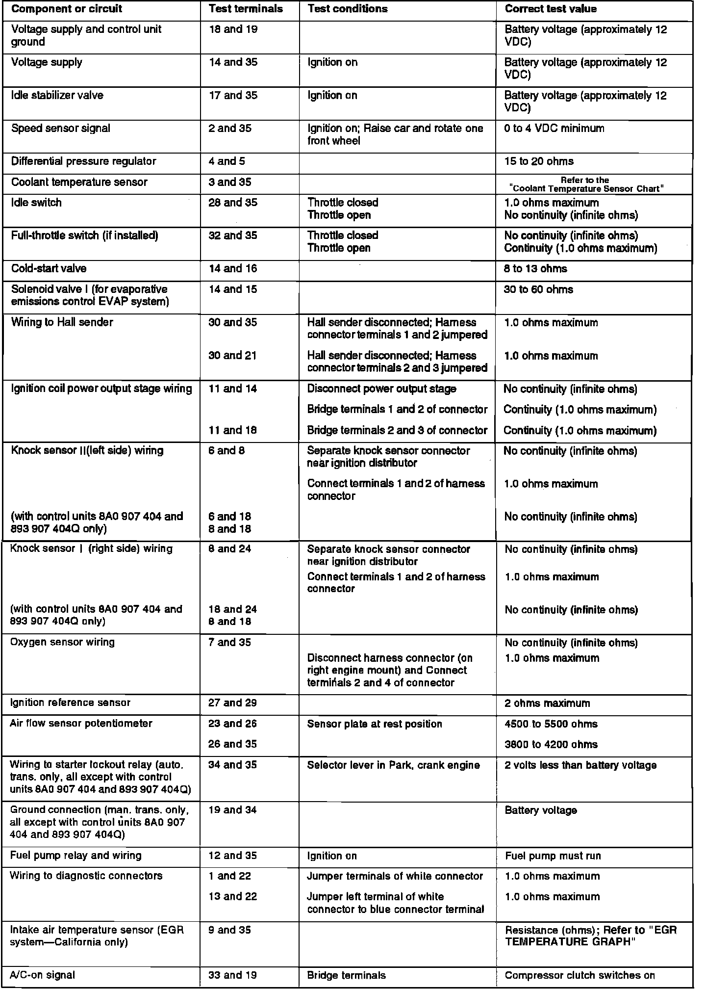 COOLANT TEMPERATURE SENSOR CHART