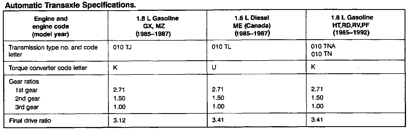 Transmission Specifications and Clearances