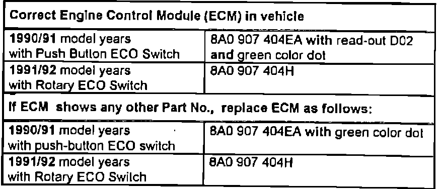 Since tester printouts tend to fade, make a photocopy of the printout and attach to repair order hard copy for future reference. Identify removed Engine Control Modules (ECM) with a completely filled out Warranty parts tag and return ECM to your Parts Department for shipment to VWoA Warranty Parts Test Center.