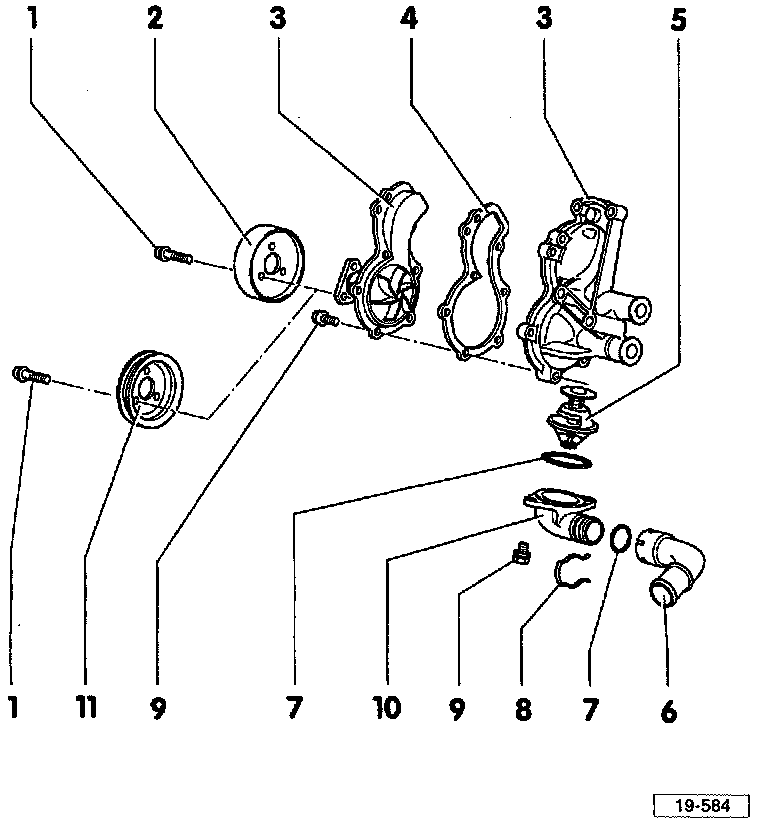 11. Coolant pump pulley (For V-belt)