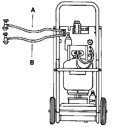- Connect blue low-pressure hose -B- of refrigerant recovery/ recycling/recharging unit to low side fitting on vehicle and open coupler valve.
