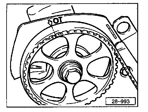 - Align mark on camshaft drive belt sprocket with arrow on top of drive belt cover.