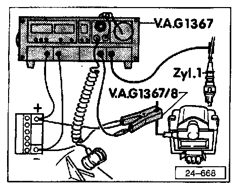 - Connect VAG 1367 ignition tester using VAG 1367/8 inductive pickup adapter.