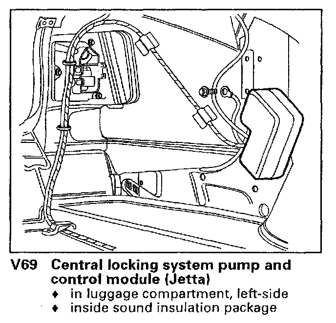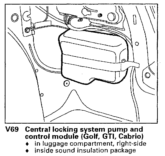 Central Locking System Pump and Control Module (Golf, GTI, Cabrio) V69