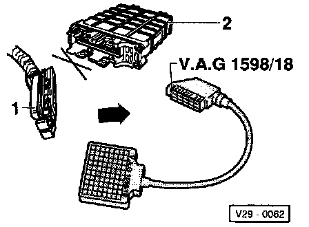 - Connect VAG 1598/18 test box to ECM wiring harness (arrow).