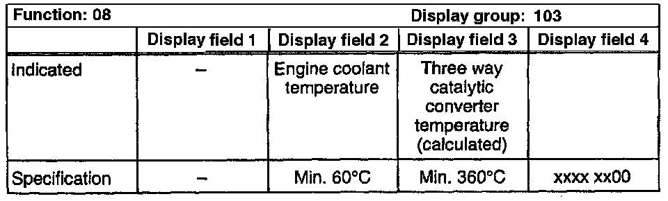 - Increase engine speed to 2200-3300 RPM and wait until catalyst temperature (field 3) reaches specification.