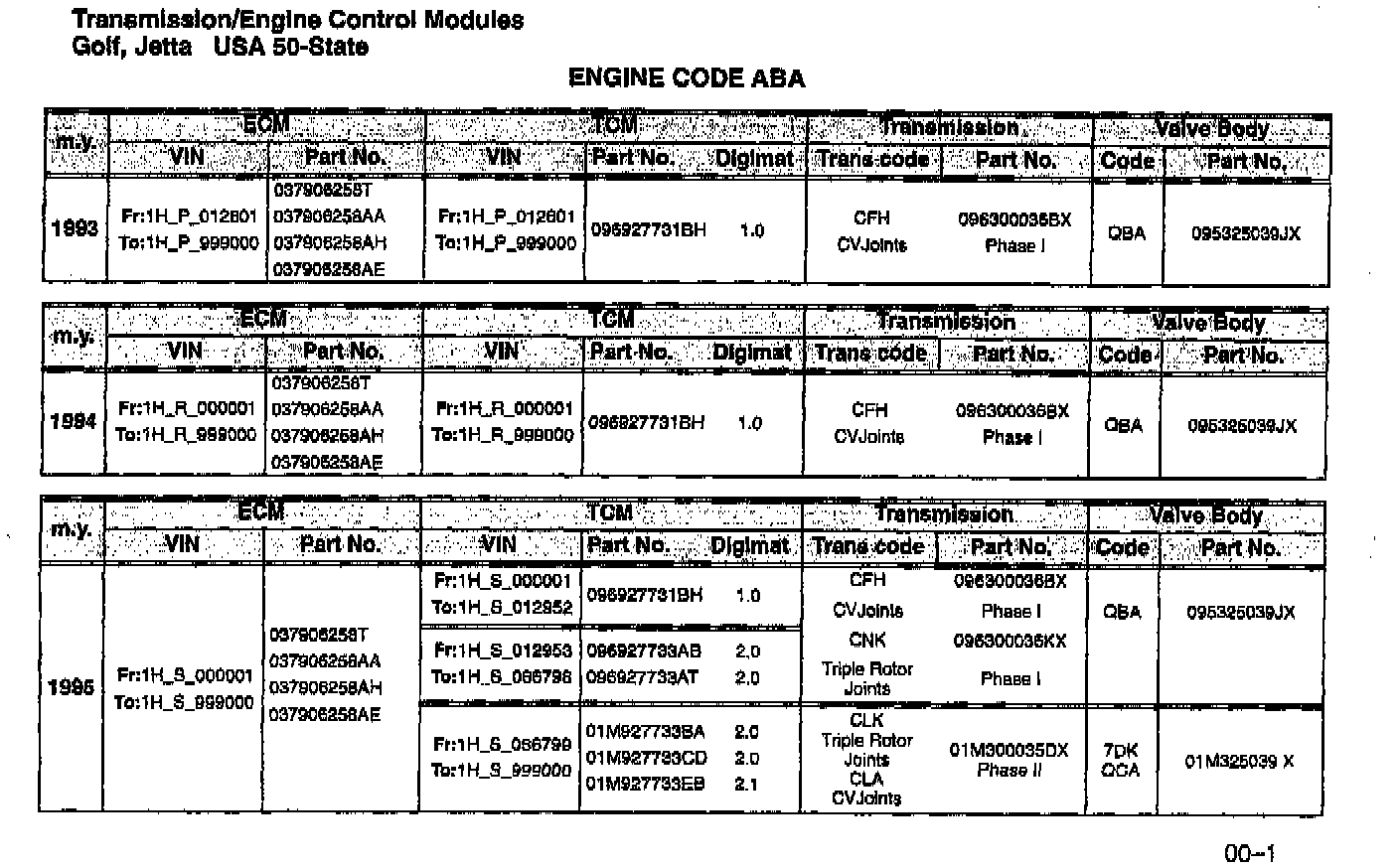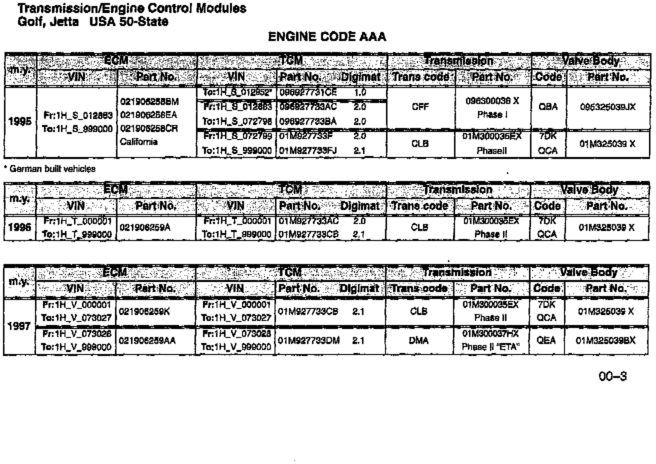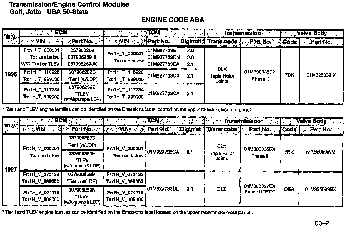 Golf, Jetta 50-State 1993 --> 1997