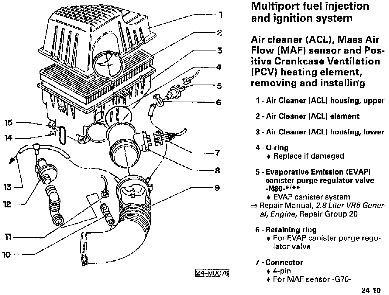 These pages replace pages 24-10 and 24-11 in the current edition Repair Manual, 2.8 Liter VR6 OBD II VAG 1551 Fuel Injection & Ignition (W42 011 294 123), and will be integrated with the next Repair Manual update.