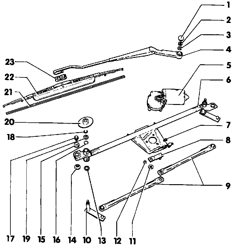 5- Windshield wiper motor -V-. (When Removing, first remove wiper frame -6-.)
