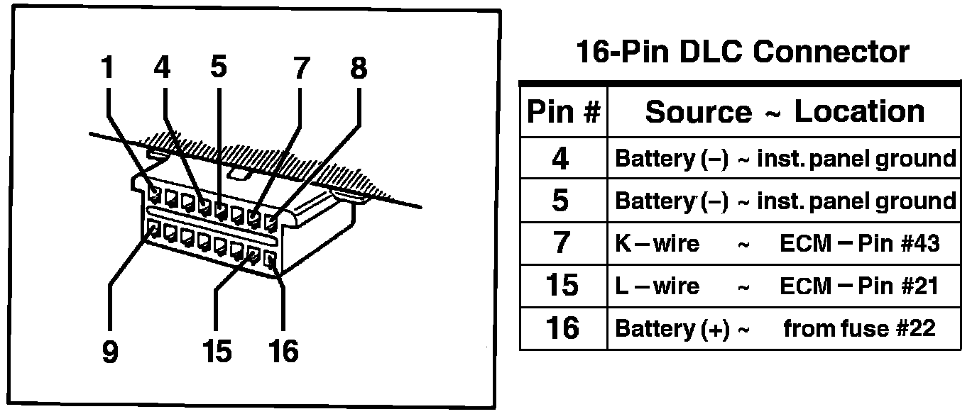 16-Pin Data Link Connector Pin Source I.D. And Location: