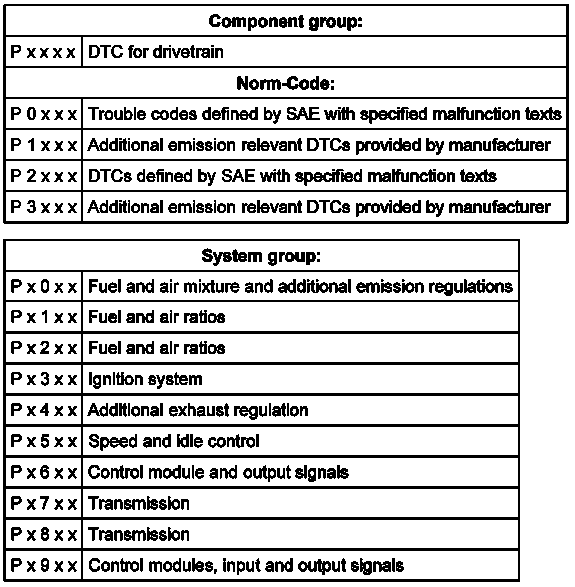 The DTC always consists of a 5-digit alpha-numeric value with the following meaning: