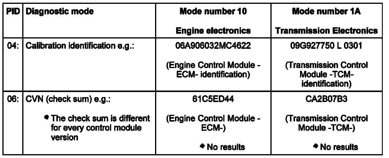 In this diagnostic mode, vehicle specific diagnostic data such as e.g. the control module versions will be displayed.