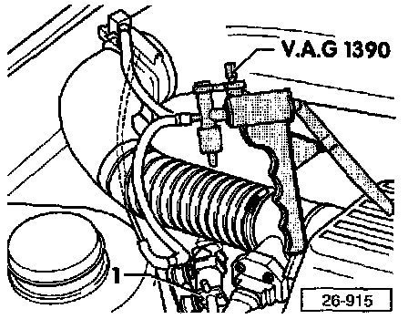 - Connect VAG 1390 vacuum pump to the disconnected hose.