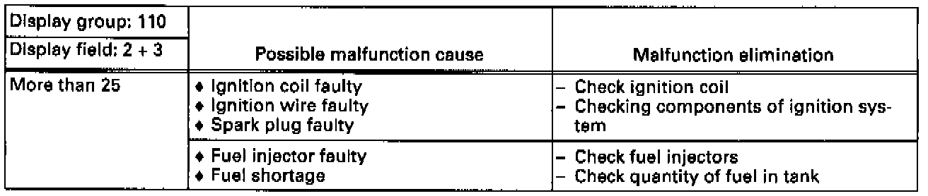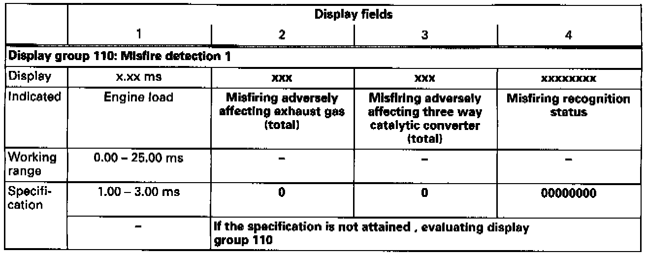 - Check the specifications for misfire detection (Display Fields 2-4).