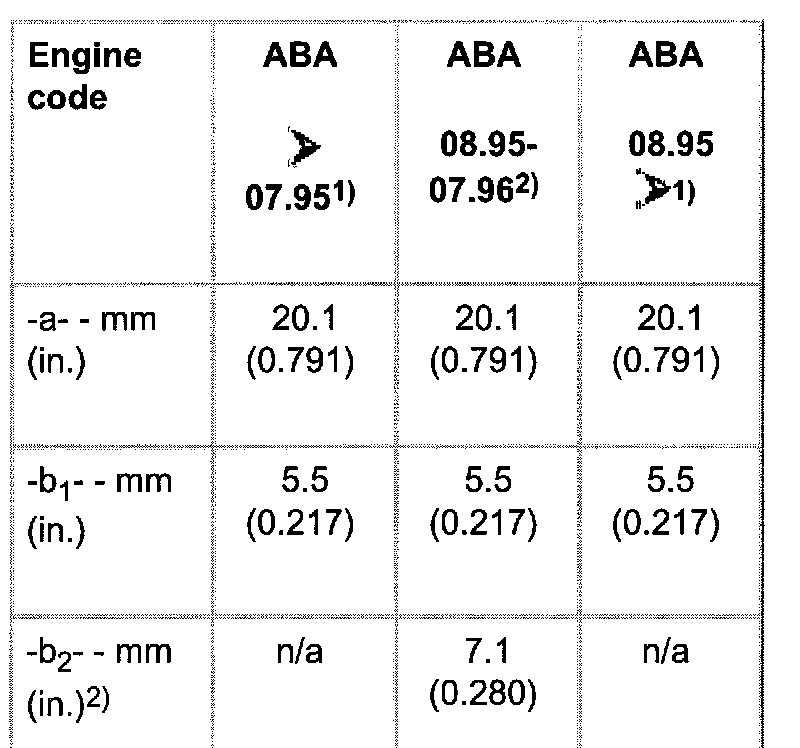 Piston and cylinder dimensions 08.95-07.96 1)