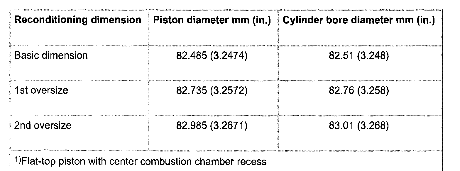 Piston and cylinder dimensions 08.95 -> 1)