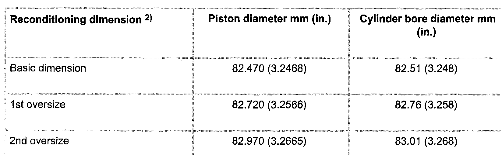2) Dimension stamped on piston crown. Add 0.015 mm (0.0006 in.) for actual diameter including phosphate layer.