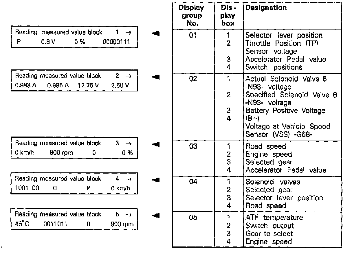 - Press buttons 0 and 8. (To select function 08 "Read measuring value block").