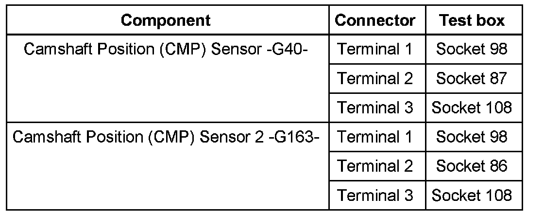 - Disconnect 3-pin connectors from Camshaft Position (CMP) sensors:
