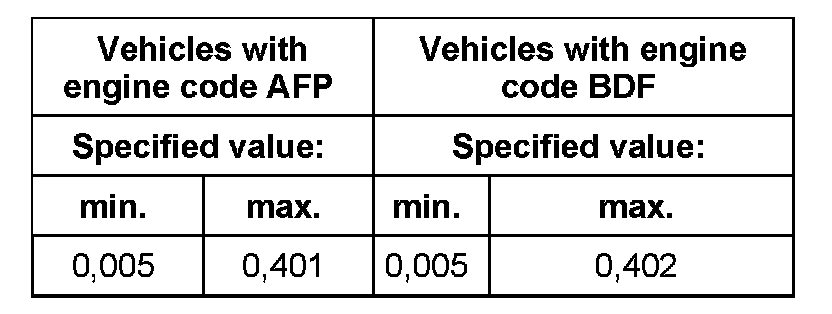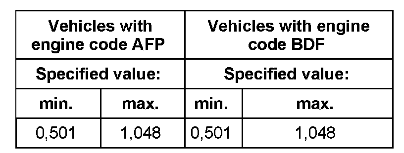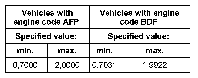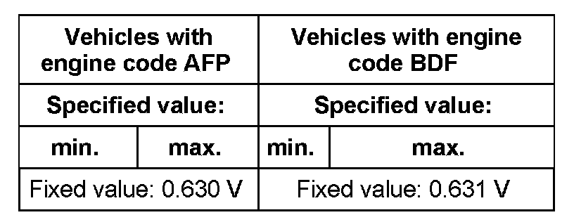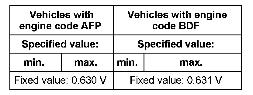 The values of the individual oxygen sensor signal outputs must reach the specified value or must be within the min.- and max.- limits.