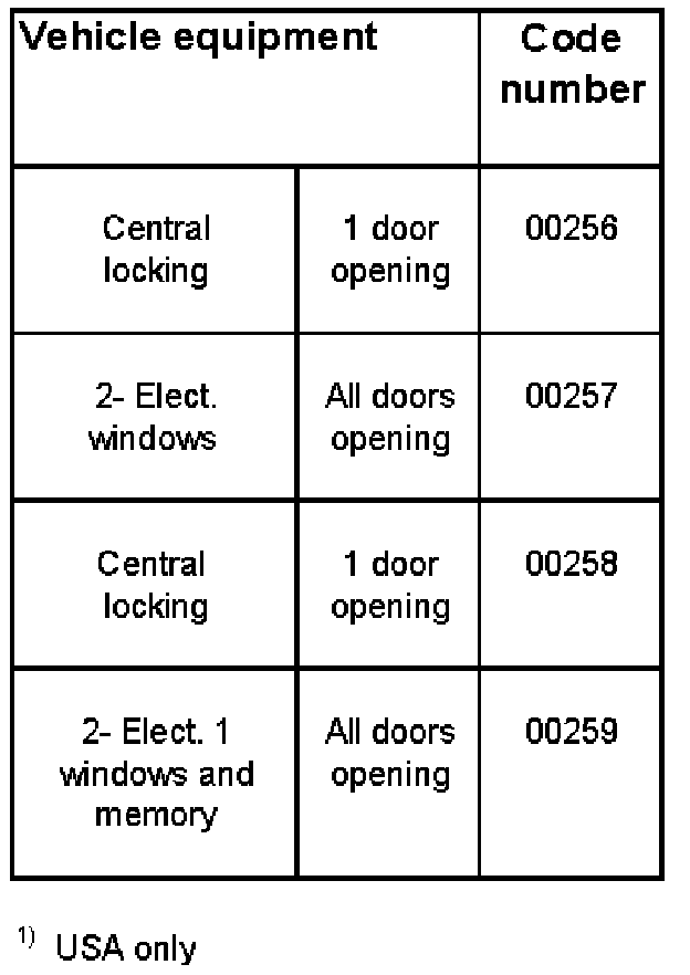 The following code numbers (and others) will be accepted by the control module; however they are for other vehicles, other countries and/or other equipment levels.