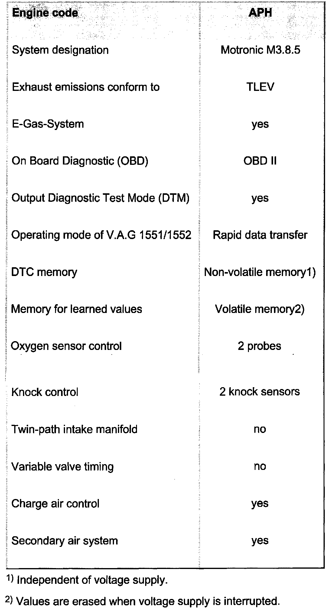 On Board Diagnostic (OBD), Technical Data