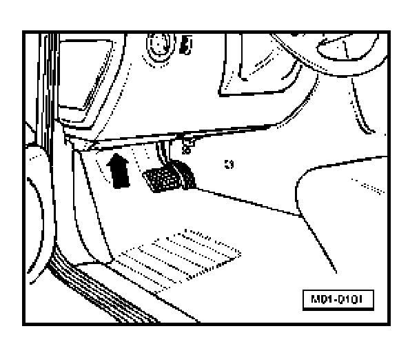 - Connect diagnostic cable connector to Data Link Connector (DLC) -arrow-.