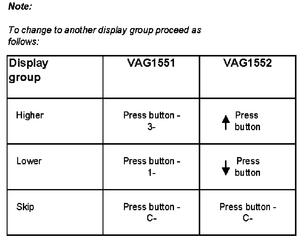 NOTE: Some of the indicated display groups are only meaningful for corresponding vehicle equipment (e.g. side airbag).